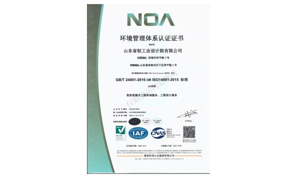 环境管理体系认证证书