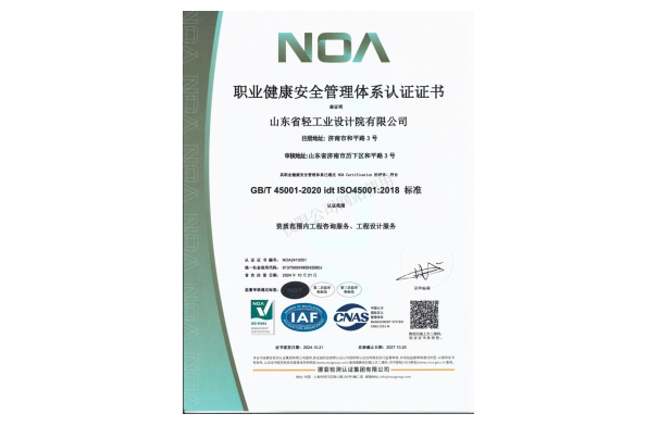 职业健康安全管理体系认证证书
