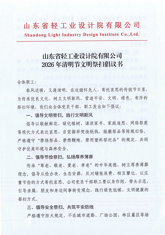 山东省轻工业设计院有限公司2026年清明节文明祭扫倡议书
